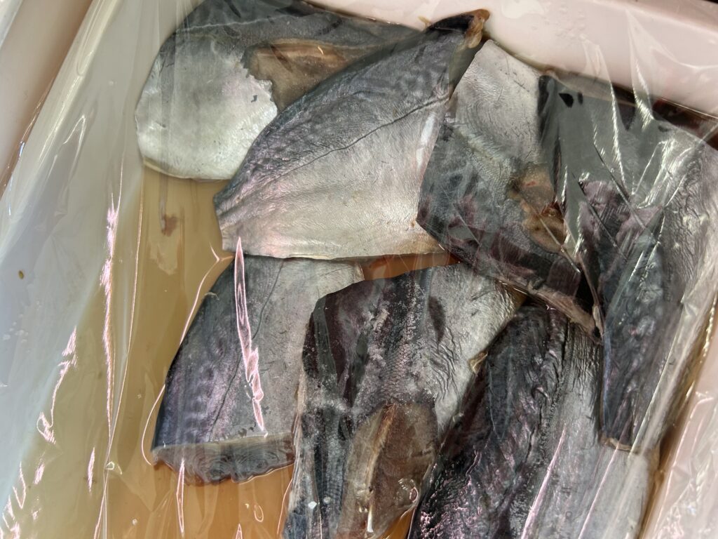 ソウダガツオを強めの塩で〆ました。